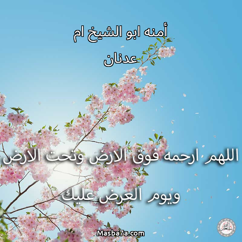 اللهم ارحم ( أمنه ابو الشيخ ام عدنان ) وانس وحشته واجمعنا به في جنتك ، اللهم ارحمه بقدر شوقنا له اللهم ارحمه واغفر له .