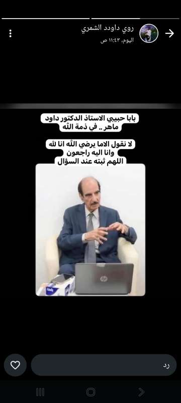 اللهم ارحم ( دكتور داوود ماهر ) وانس وحشته واجمعنا به في جنتك ، اللهم ارحمه بقدر شوقنا له اللهم ارحمه واغفر له .