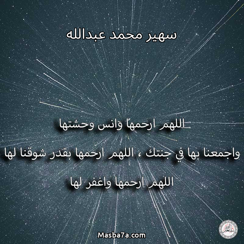 اللهم ارحم ( سهير محمد عبدالله ) وانس وحشتها واجمعنا بها في جنتك ، اللهم ارحمها بقدر شوقنا لها اللهم ارحمها واغفر لها .