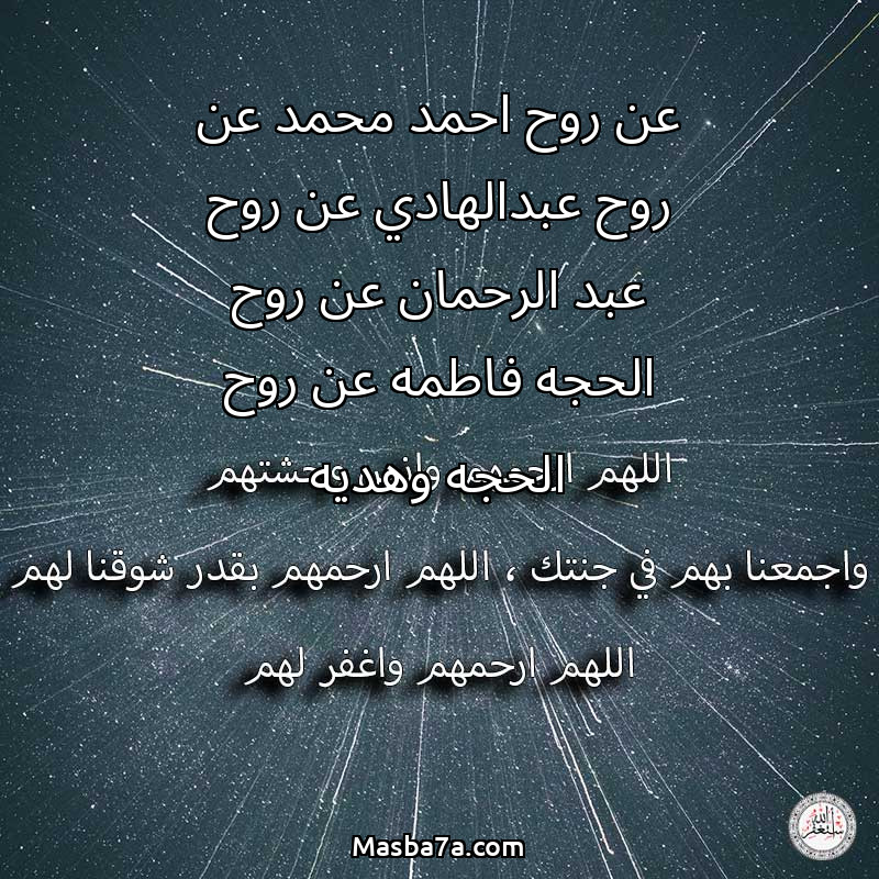 دعاء عن أرواح المرحومين عن روح احمد محمد عن روح عبدالهادي عن روح عبد الرحمان عن روح الحجه فاطمه عن روح الحجه وهديه