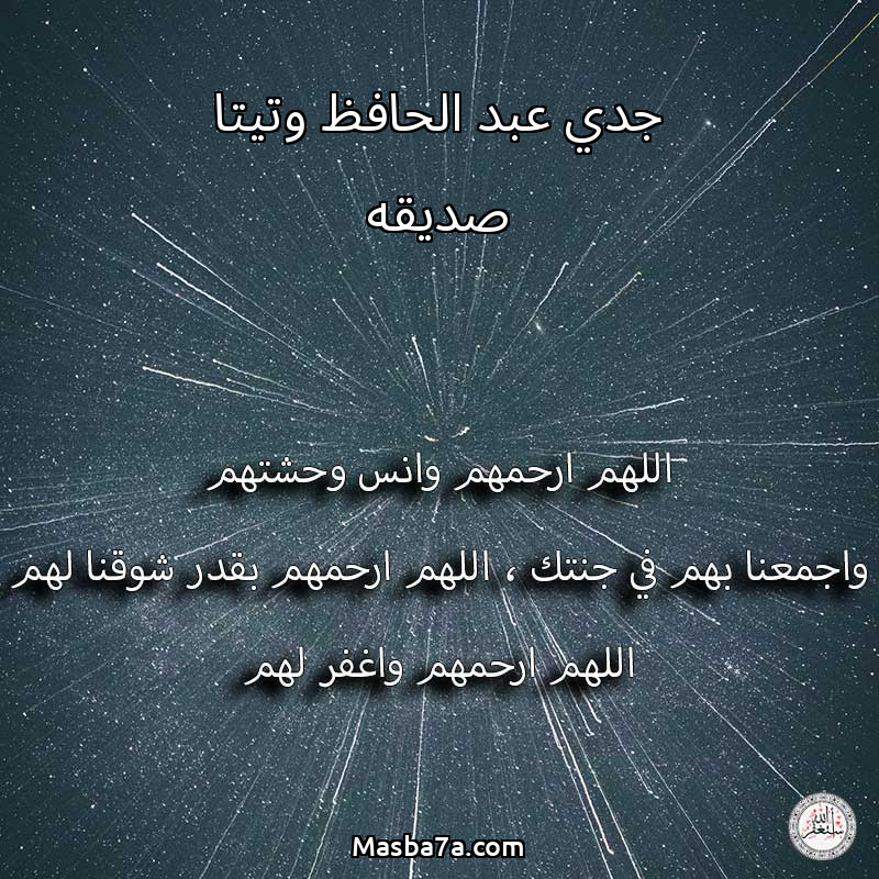 اللهم ارحم ( جدي عبد الحافظ وتيتا صديقه ) وانس وحشتهم واجمعنا بهم في جنتك ، اللهم ارحمهم بقدر شوقنا لهم اللهم ارحمهم واغفر لهم.