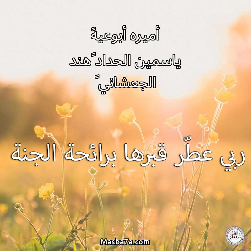 اللهم ارحم ( أميره أبوعيه♡ ياسمين الحداد ♡هند الجعشاني ♡ ) وانس وحشتها واجمعنا بها في جنتك ، اللهم ارحمها بقدر شوقنا لها اللهم ارحمها واغفر لها .