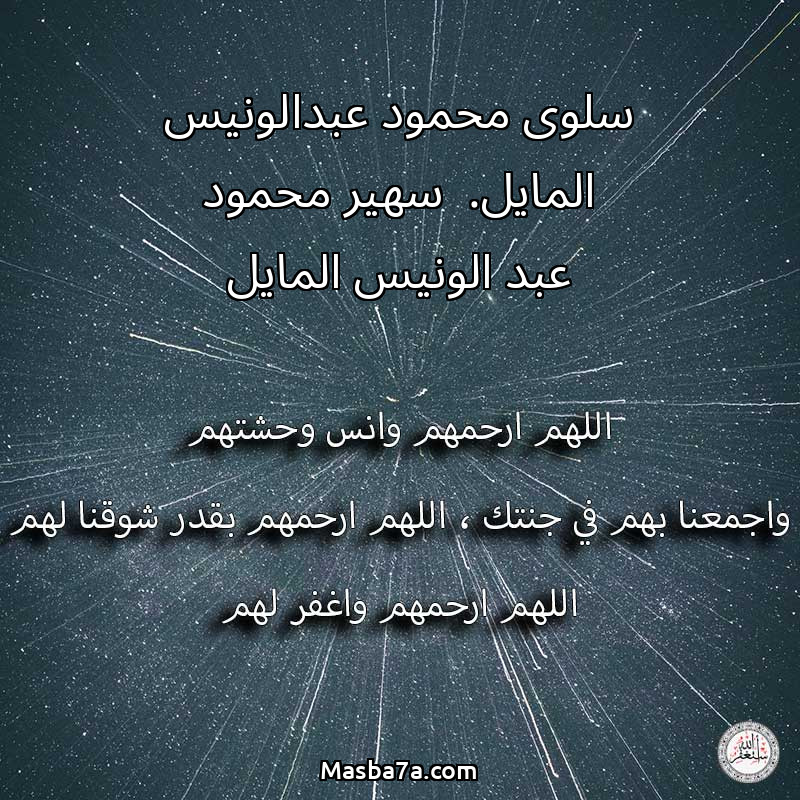اللهم ارحم ( سلوى محمود عبدالونيس المايل. سهير محمود عبد الونيس المايل ) وانس وحشتهم واجمعنا بهم في جنتك ، اللهم ارحمهم بقدر شوقنا لهم اللهم ارحمهم واغفر لهم.