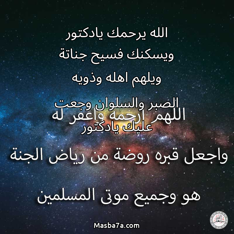 دعاء عن روح المرحوم الله يرحمك يادكتور ويسكنك فسيح جناتة ويلهم اهله وذويه الصبر والسلوان وجعت عليك يادكتور
