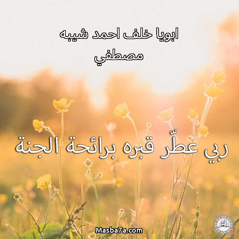 اللهم ارحم ( ابويا خلف احمد شيبه مصطفي ) وانس وحشته واجمعنا به في جنتك ، اللهم ارحمه بقدر شوقنا له اللهم ارحمه واغفر له .