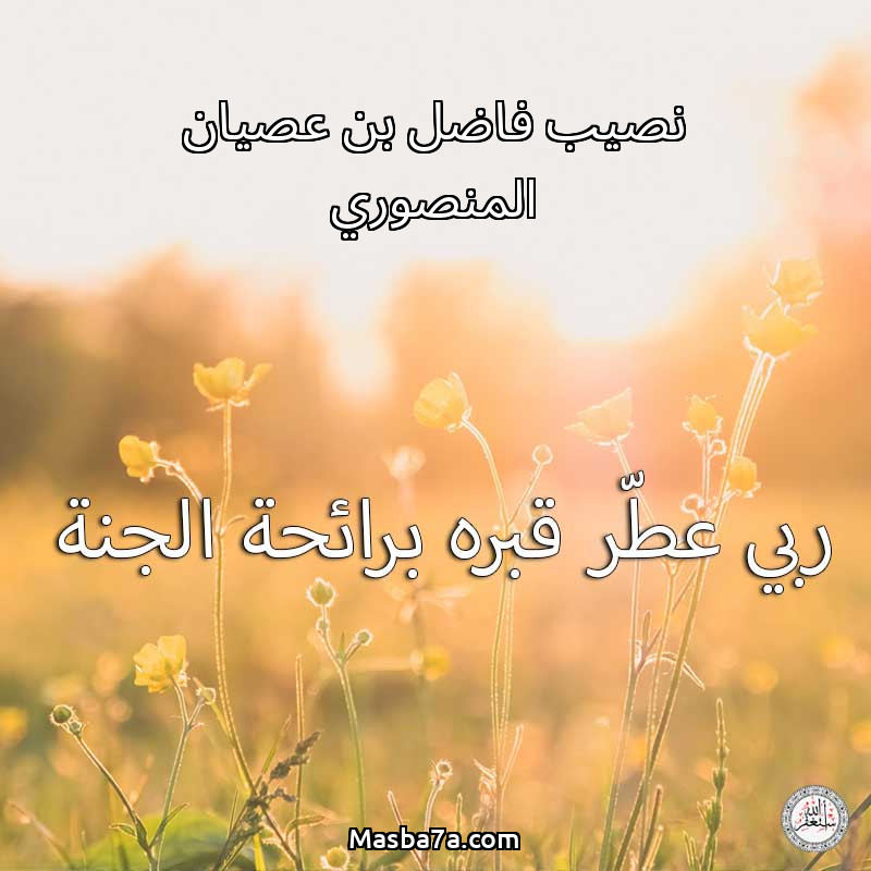 اللهم ارحم ( نصيب فاضل بن عصيان المنصوري ) وانس وحشته واجمعنا به في جنتك ، اللهم ارحمه بقدر شوقنا له اللهم ارحمه واغفر له .