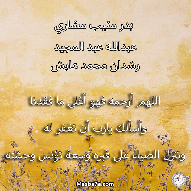 دعاء عن روح المرحوم بدر مثيب مشاري عبدالله عبد المجيد رشدان محمد عايش