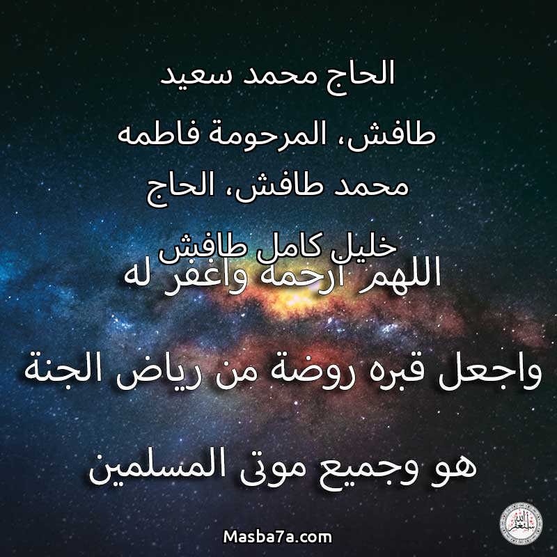 دعاء عن روح المرحوم الحاج محمد سعيد طافش، المرحومة فاطمه محمد طافش، الحاج خليل كامل طافش