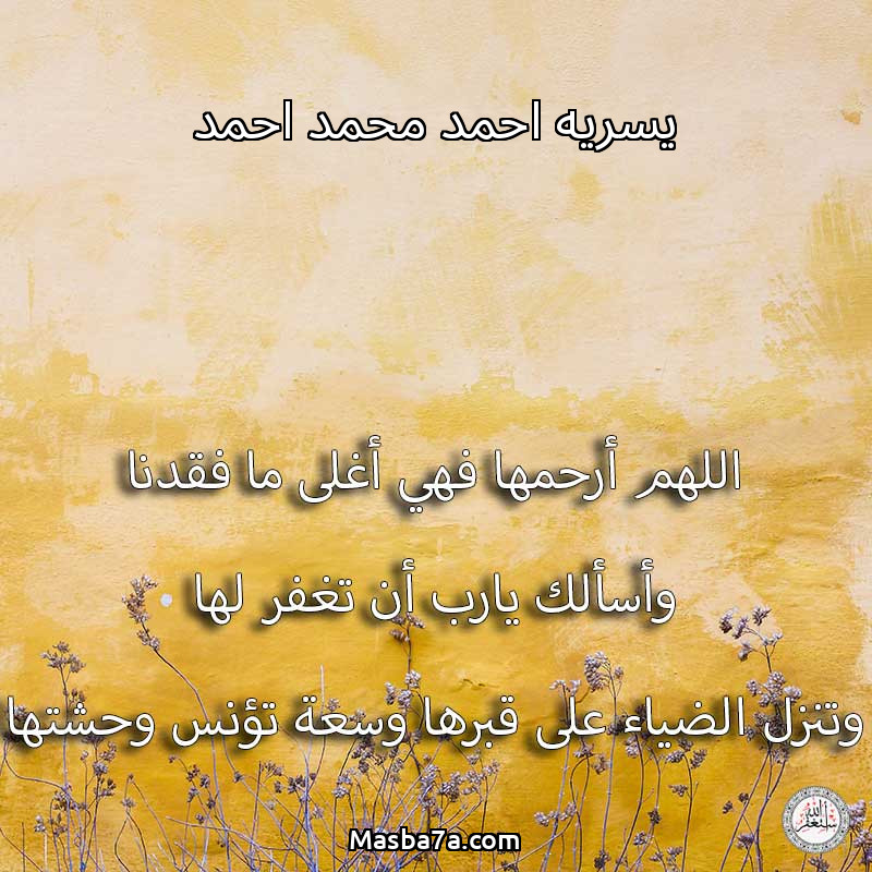 اللهم ارحم ( يسريه احمد محمد احمد ) وانس وحشتها واجمعنا بها في جنتك ، اللهم ارحمها بقدر شوقنا لها اللهم ارحمها واغفر لها .
