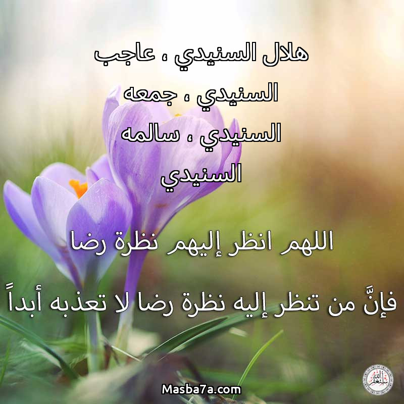 اللهم ارحم ( هلال السنيدي ، عاجب السنيدي ، جمعه السنيدي ، سالمه السنيدي ) وانس وحشتهم واجمعنا بهم في جنتك ، اللهم ارحمهم بقدر شوقنا لهم اللهم ارحمهم واغفر لهم.