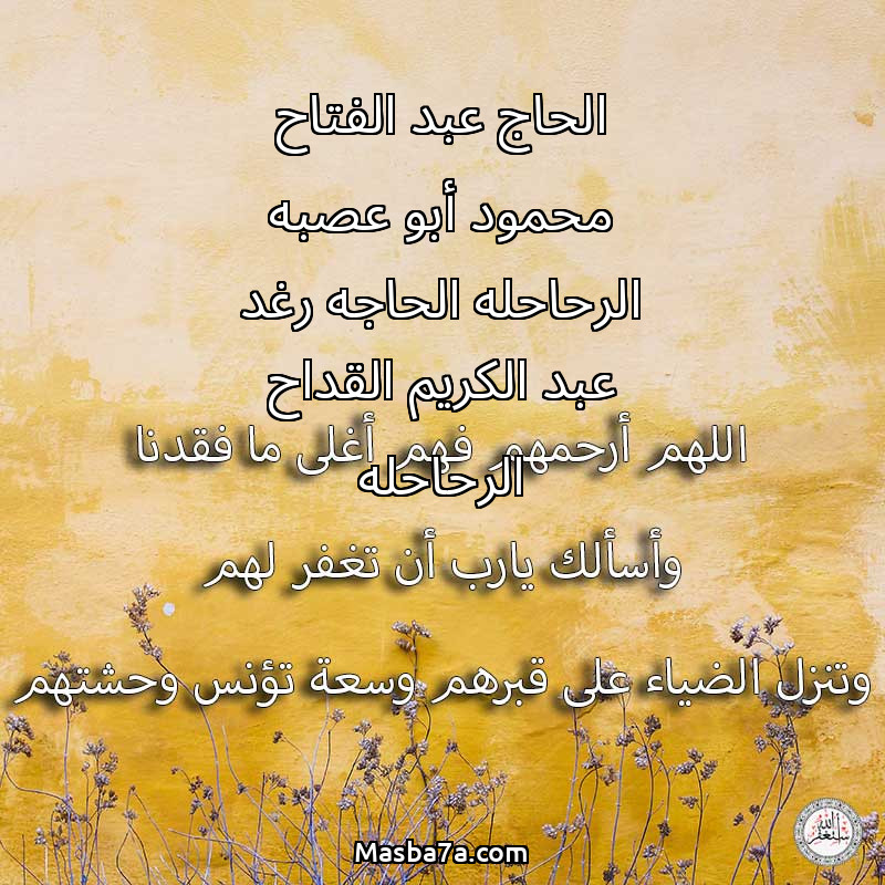دعاء عن أرواح المرحومين الحاج عبد الفتاح محمود أبو عصبه الرحاحله الحاجه رغد عبد الكريم القداح الرحاحله