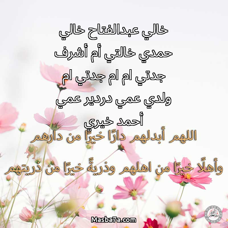 دعاء عن أرواح المرحومين خالي عبدالفتاح خالي حمدي خالتي أم أشرف جدتي ام ام جدتي ام ولدي عمي دردير عمي أحمد خيري