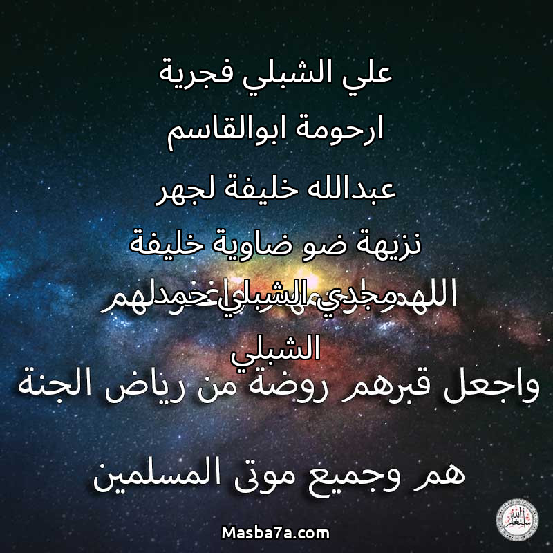 دعاء عن أرواح المرحومين علي الشبلي فجرية ارحومة ابوالقاسم عبدالله خليفة لجهر نزيهة ضو ضاوية خليفة مجدي الشبلي حمد الشبلي