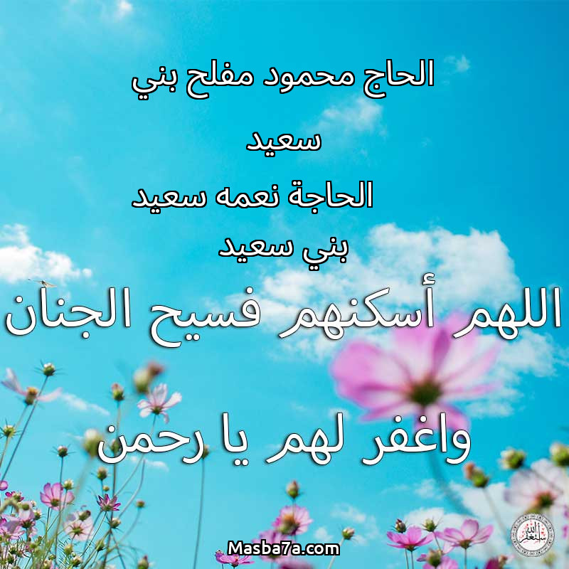 دعاء عن أرواح المرحومين الحاج محمود مفلح بني سعيد الحاجة نعمه سعيد بني سعيد