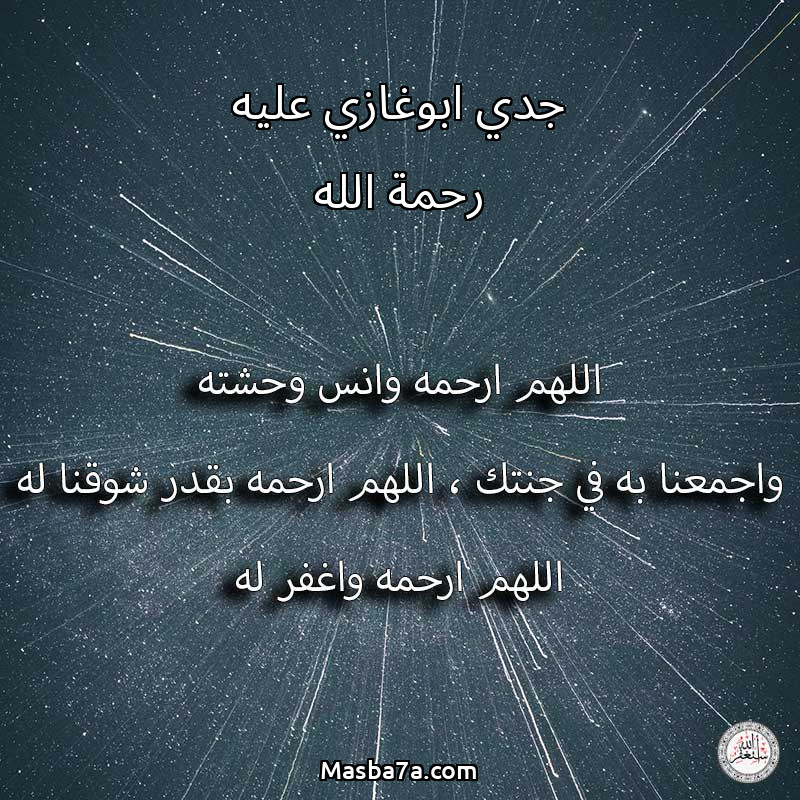 اللهم ارحم ( جدي ابوغازي عليه رحمة الله ) وانس وحشته واجمعنا به في جنتك ، اللهم ارحمه بقدر شوقنا له اللهم ارحمه واغفر له .
