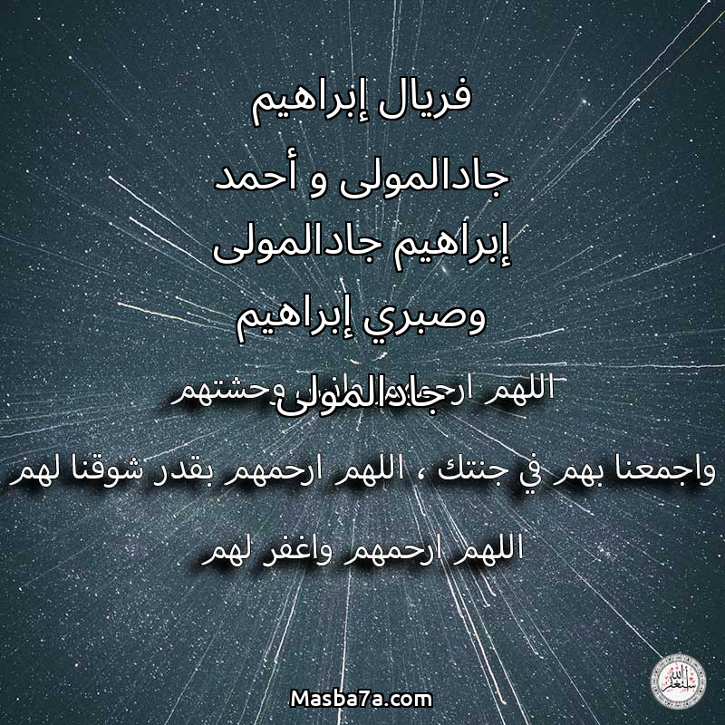 دعاء عن أرواح المرحومين فريال إبراهيم جادالمولى و أحمد إبراهيم جادالمولى وصبري إبراهيم جادالمولى