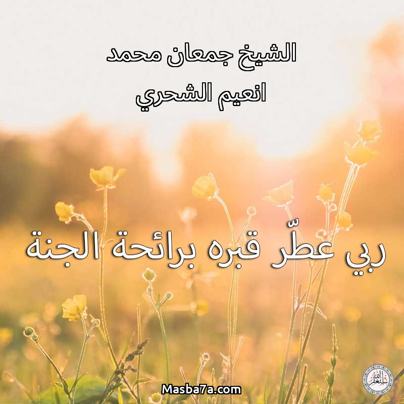 اللهم ارحم ( الشيخ جمعان محمد انعيم الشحري ) وانس وحشته واجمعنا به في جنتك ، اللهم ارحمه بقدر شوقنا له اللهم ارحمه واغفر له .