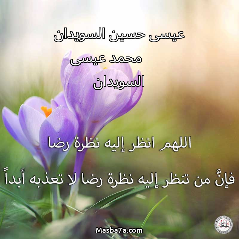 اللهم ارحم ( عيسى حسين السويدان محمد عيسى السويدان ) وانس وحشته واجمعنا به في جنتك ، اللهم ارحمه بقدر شوقنا له اللهم ارحمه واغفر له .