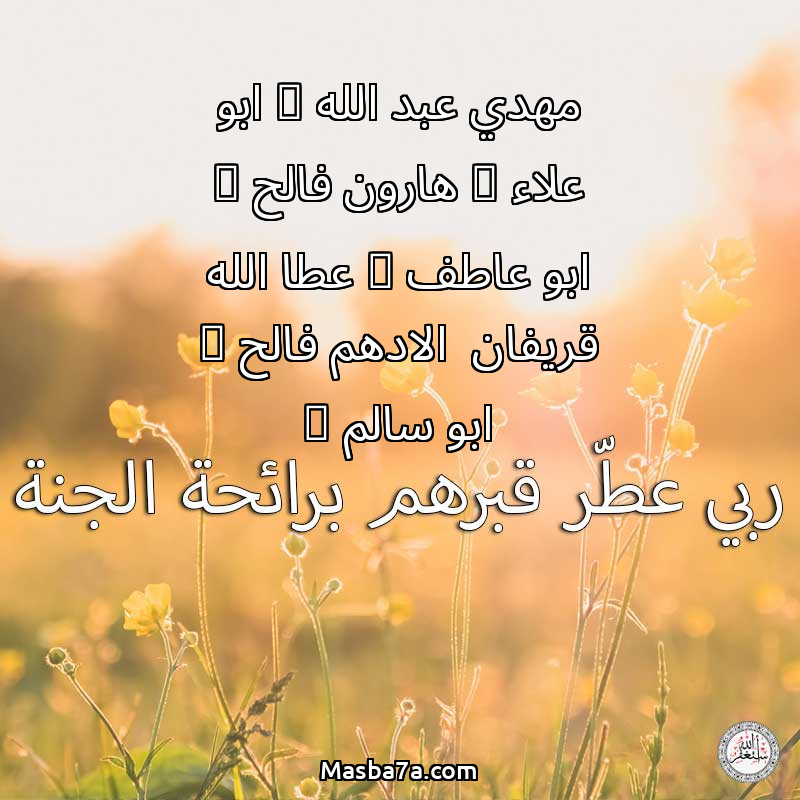 دعاء عن أرواح المرحومين مهدي عبد الله ( ابو علاء ) هارون فالح ( ابو عاطف ) عطا الله قريفان الادهم فالح ( ابو سالم )
