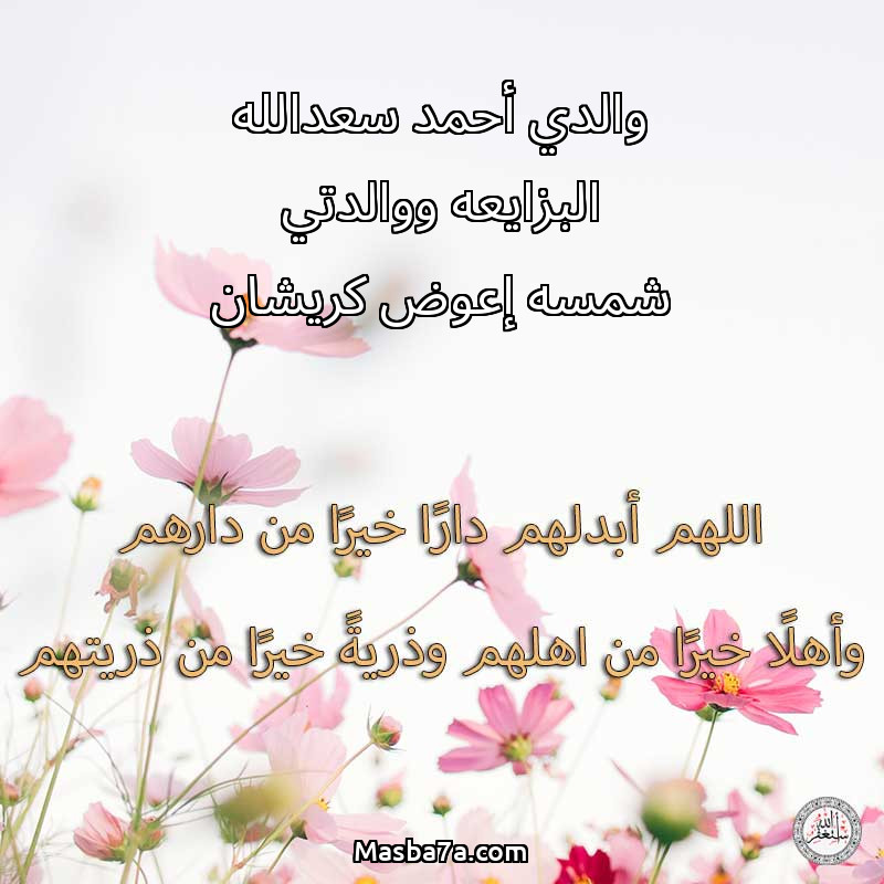 دعاء عن أرواح المرحومين والدي أحمد سعدالله البزايعه ووالدتي شمسه إعوض كريشان