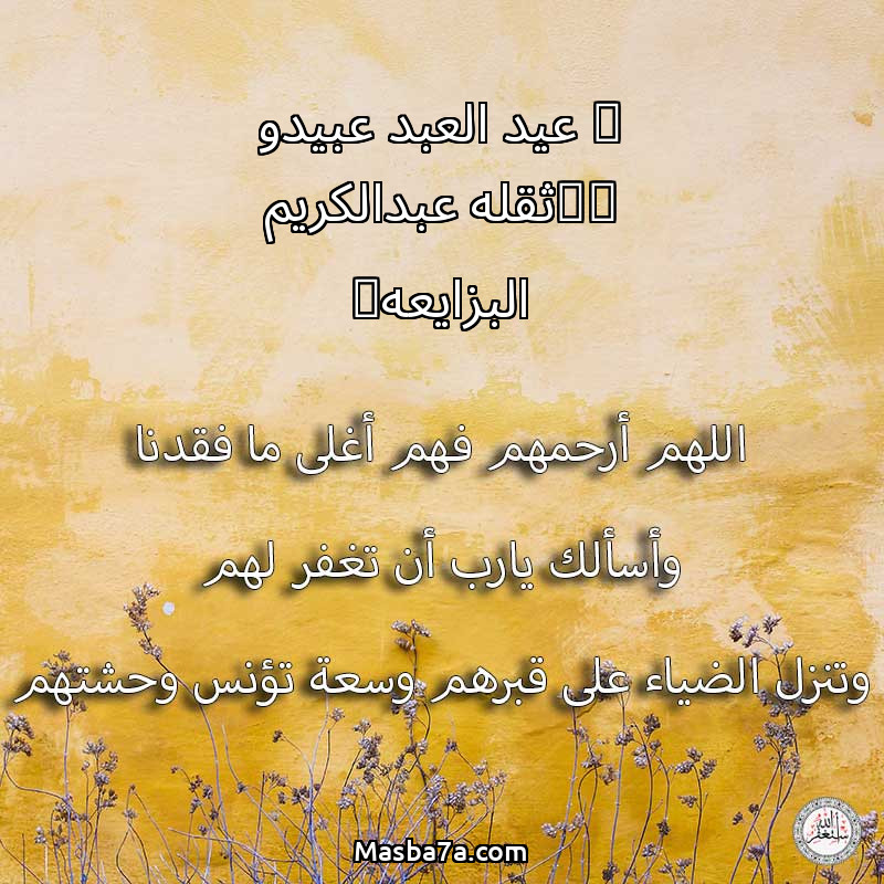 اللهم ارحم ( ( عيد العبد عبيدو )(ثقله عبدالكريم البزايعه) ) وانس وحشتهم واجمعنا بهم في جنتك ، اللهم ارحمهم بقدر شوقنا لهم اللهم ارحمهم واغفر لهم.