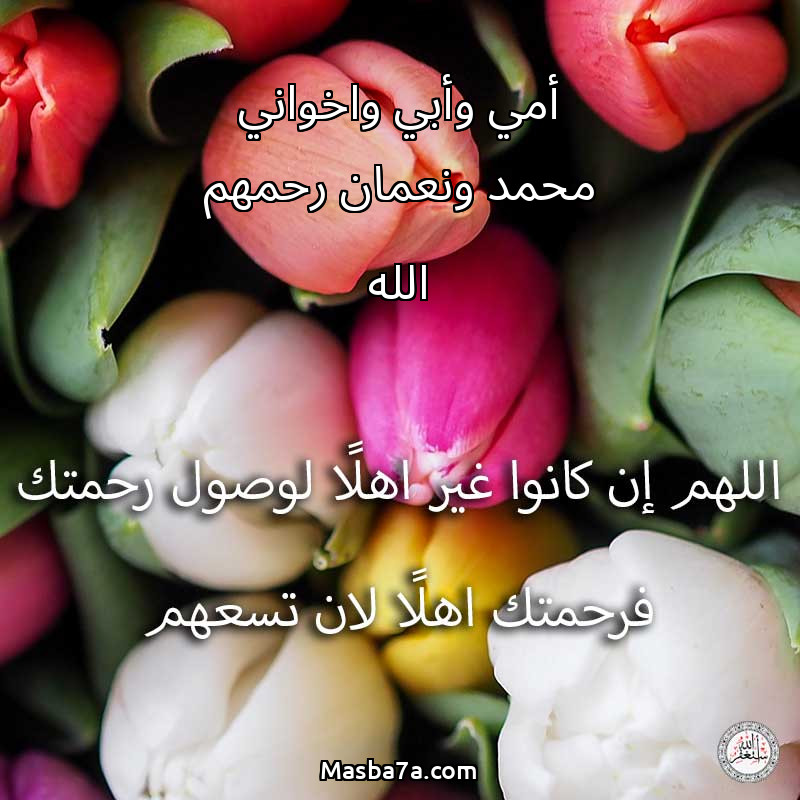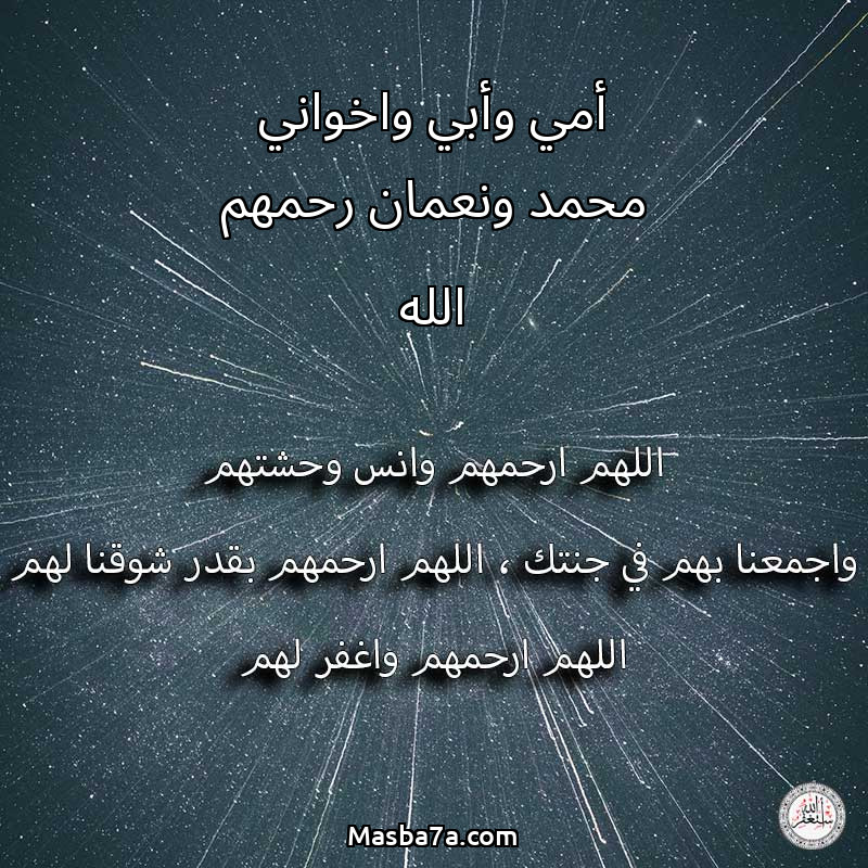 اللهم ارحم ( أمي وأبي واخواني محمد ونعمان رحمهم الله ) وانس وحشتهم واجمعنا بهم في جنتك ، اللهم ارحمهم بقدر شوقنا لهم اللهم ارحمهم واغفر لهم.