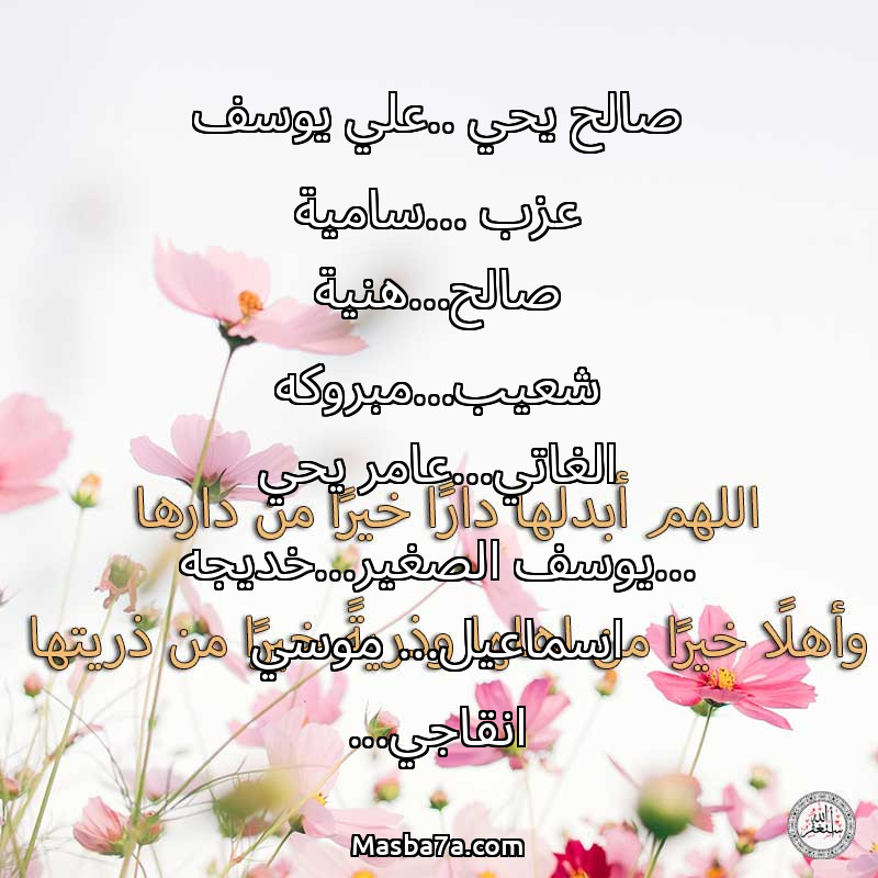 دعاء عن روح المرحومة صالح يحي ..علي يوسف عزب ...سامية صالح...هنية شعيب...مبروكه الغاتي...عامر يحي ...يوسف الصغير...خديجه اسماعيل... موسي انقاجي...