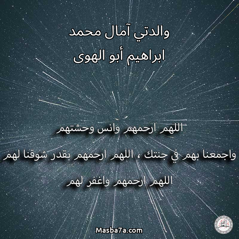 اللهم ارحم ( والدتي آمال محمد ابراهيم أبو الهوى ) وانس وحشتهم واجمعنا بهم في جنتك ، اللهم ارحمهم بقدر شوقنا لهم اللهم ارحمهم واغفر لهم.