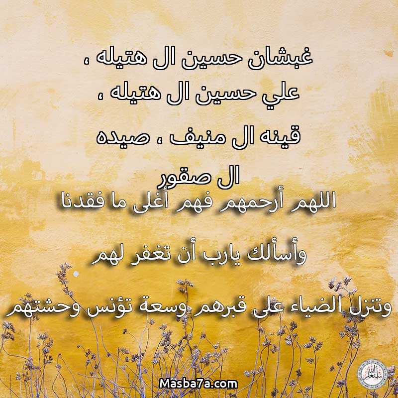دعاء عن أرواح المرحومين غبشان حسين ال هتيله ، علي حسين ال هتيله ، قينه ال منيف ، صيده ال صقور