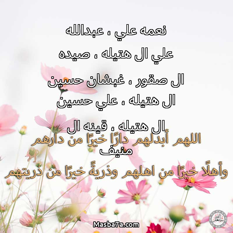 دعاء عن أرواح المرحومين نعمه علي ، عبدالله علي ال هتيله ، صيده ال صقور ، غبشان حسين ال هتيله ، علي حسين ال هتيله ، قينه ال منيف