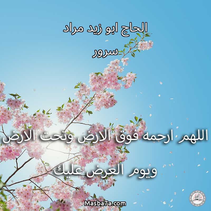 اللهم ارحم ( الحاج ابو زيد مراد سرور ) وانس وحشته واجمعنا به في جنتك ، اللهم ارحمه بقدر شوقنا له اللهم ارحمه واغفر له .