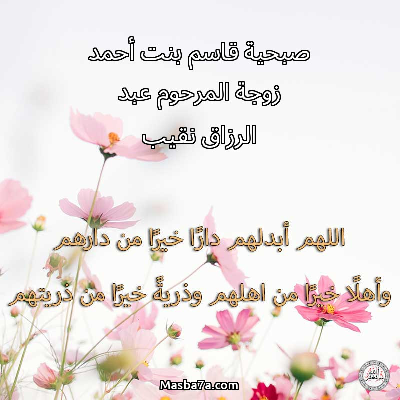 دعاء عن أرواح المرحومين صبحية قاسم بنت أحمد زوجة المرحوم عبد الرزاق نقيب