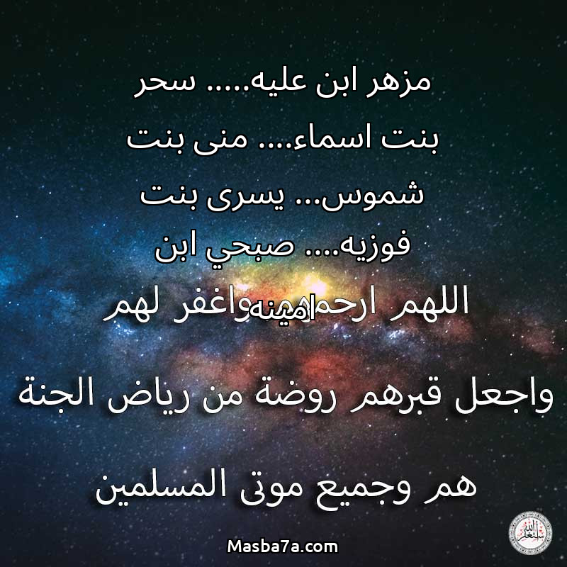 دعاء عن أرواح المرحومين مزهر ابن عليه..... سحر بنت اسماء.... منى بنت شموس... يسرى بنت فوزيه.... صبحي ابن امينه