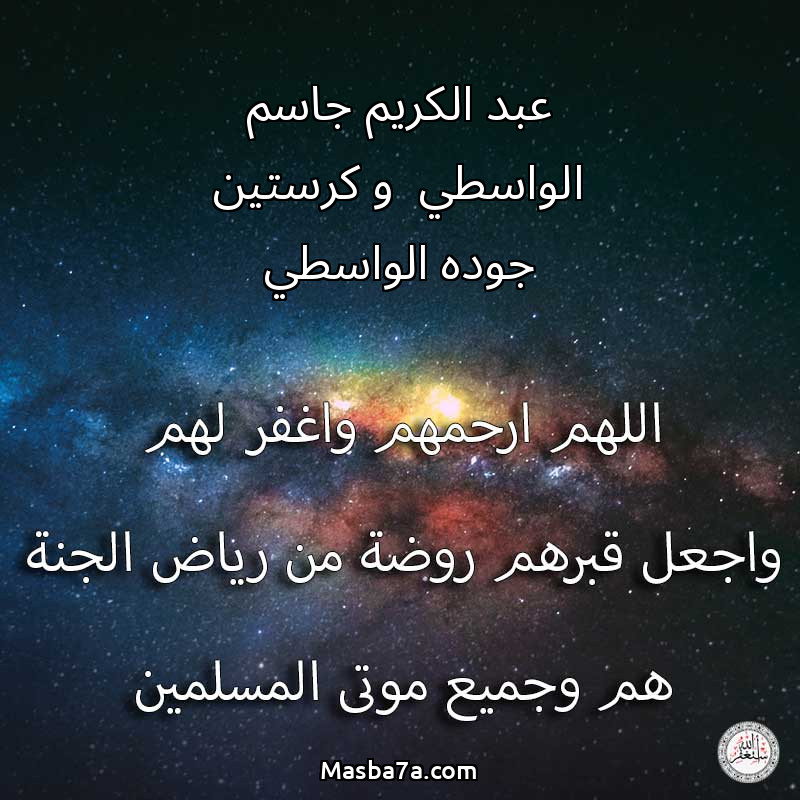 اللهم ارحم ( عبد الكريم جاسم الواسطي و كرستين جوده الواسطي ) وانس وحشتهم واجمعنا بهم في جنتك ، اللهم ارحمهم بقدر شوقنا لهم اللهم ارحمهم واغفر لهم.