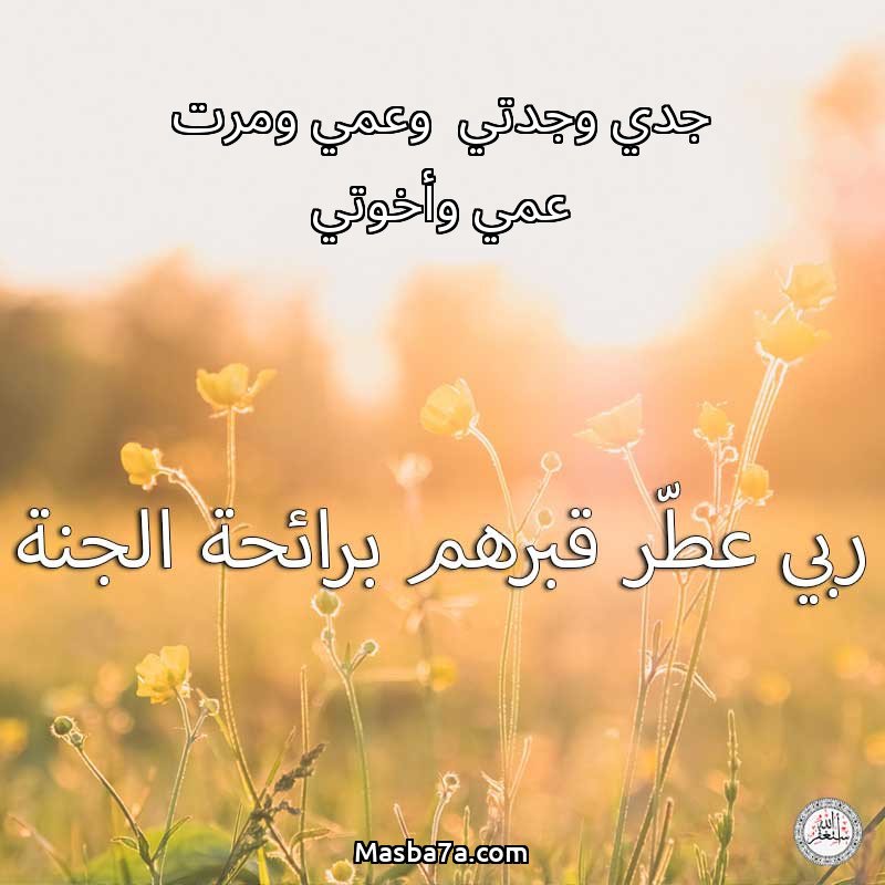 اللهم ارحم ( جدي وجدتي وعمي ومرت عمي وأخوتي ) وانس وحشتهم واجمعنا بهم في جنتك ، اللهم ارحمهم بقدر شوقنا لهم اللهم ارحمهم واغفر لهم.