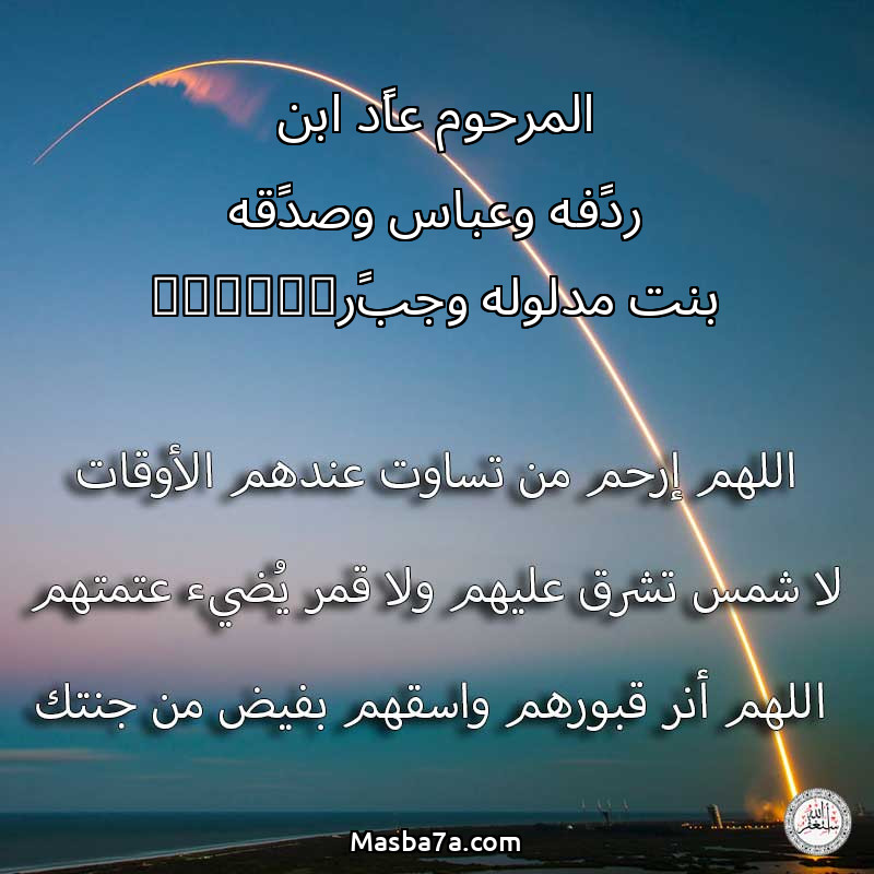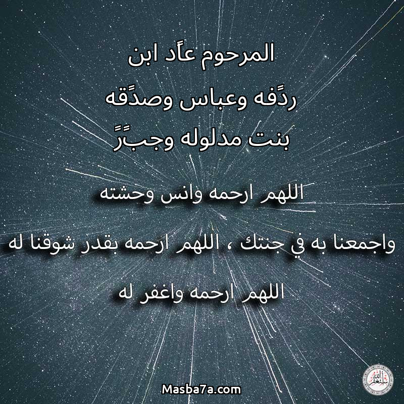 دعاء عن روح المرحوم المرحوم عاید ابن ردیفه وعباس وصدیقه بنت مدلوله وجبیر‌