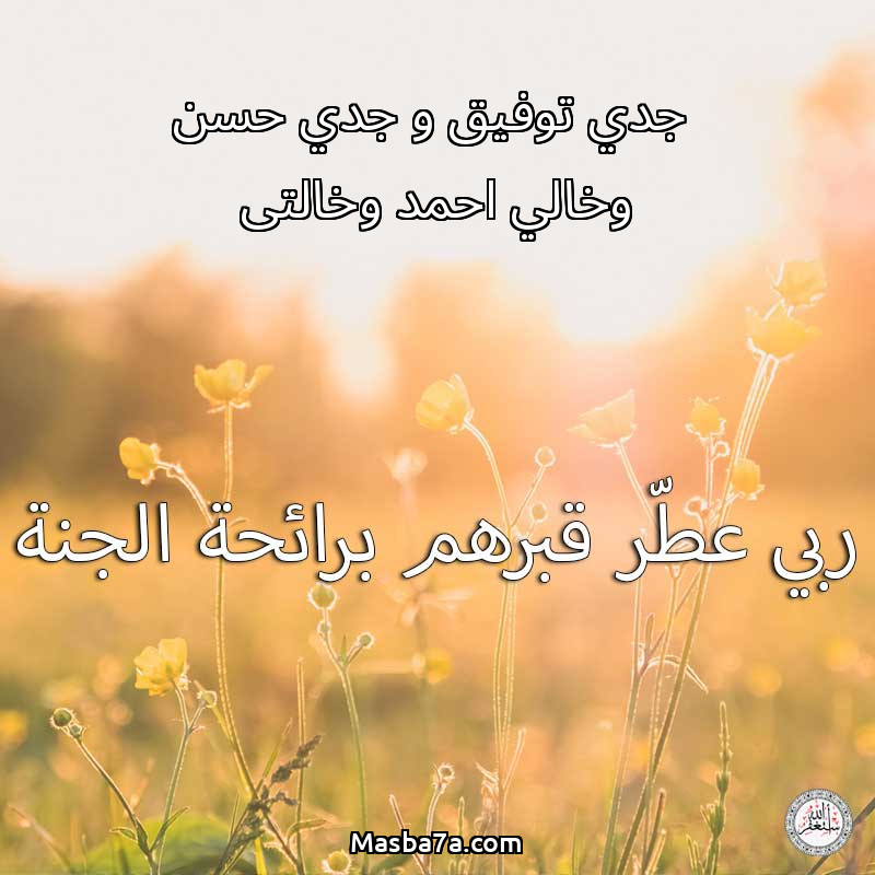 اللهم ارحم ( جدي توفيق و جدي حسن وخالي احمد وخالتى ) وانس وحشتهم واجمعنا بهم في جنتك ، اللهم ارحمهم بقدر شوقنا لهم اللهم ارحمهم واغفر لهم.