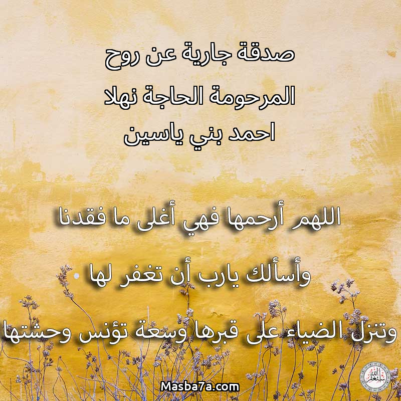 دعاء عن روح المرحومة صدقة جارية عن روح المرحومة الحاجة نهلا احمد بني ياسين