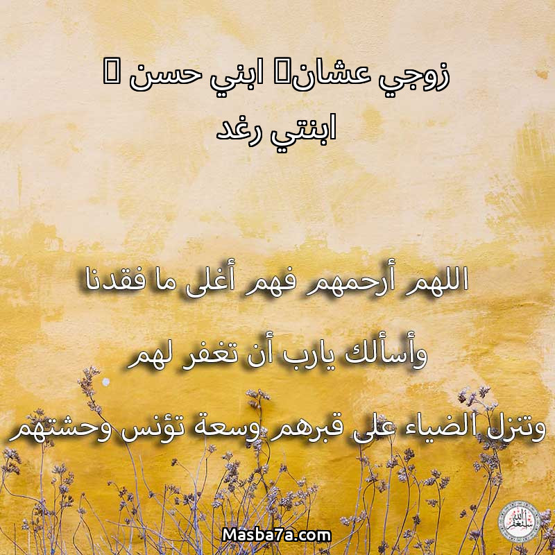 دعاء عن أرواح المرحومين زوجي عشان+ ابني حسن + ابنتي رغد