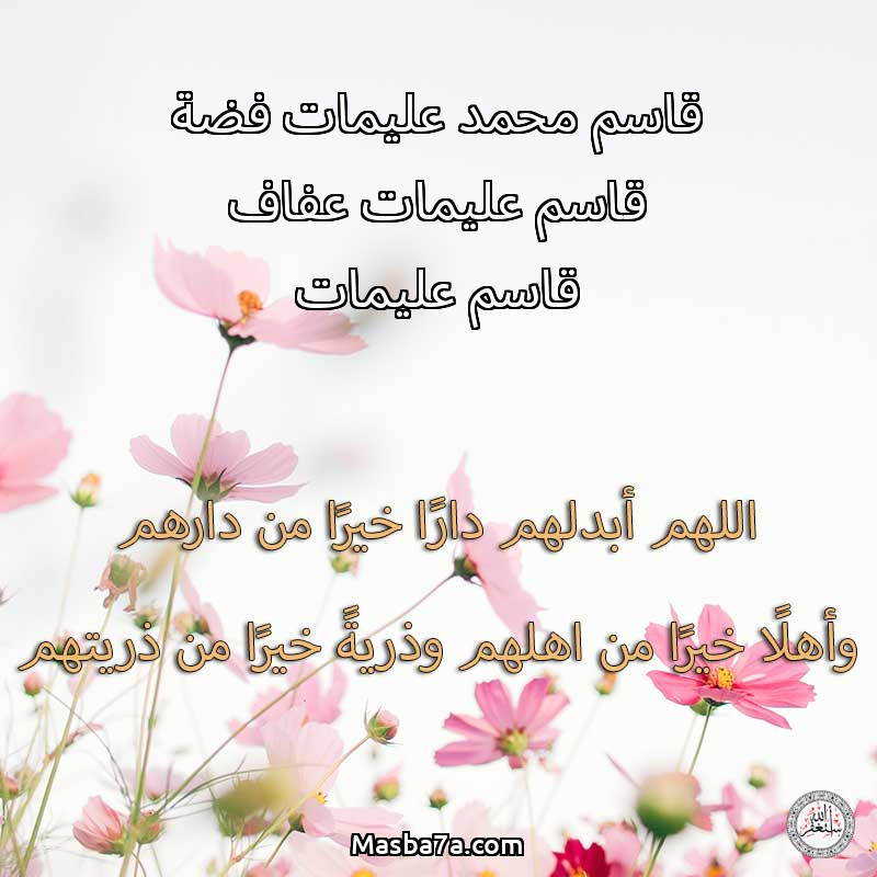 اللهم ارحم ( قاسم محمد عليمات فضة قاسم عليمات عفاف قاسم عليمات ) وانس وحشتهم واجمعنا بهم في جنتك ، اللهم ارحمهم بقدر شوقنا لهم اللهم ارحمهم واغفر لهم.