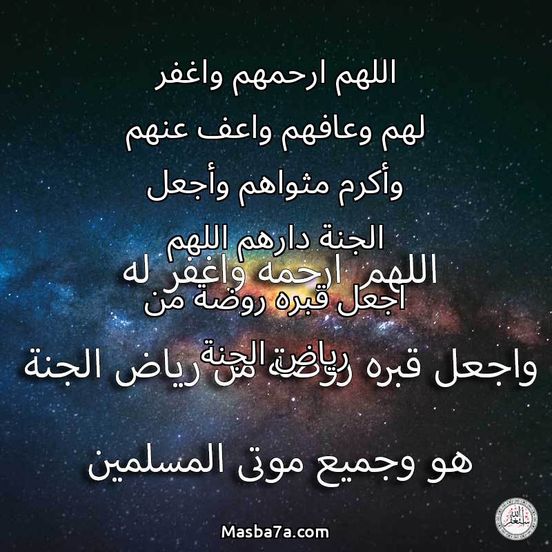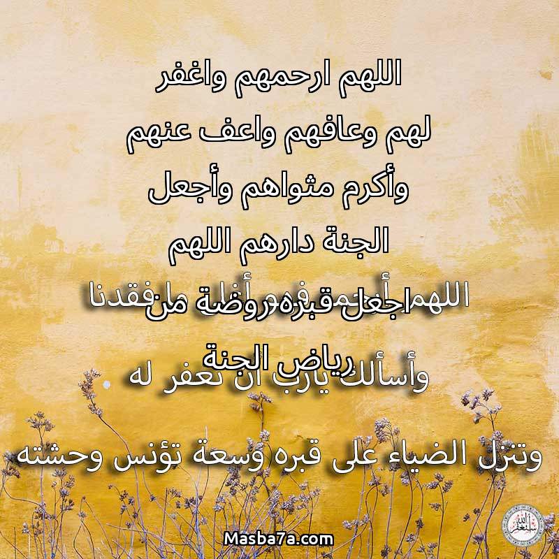 اللهم ارحمهم واغفر لهم وعافهم واعف عنهم وأكرم مثواهم وأجعل الجنة دارهم اللهم اجعل قبره روضة من رياض الجنة