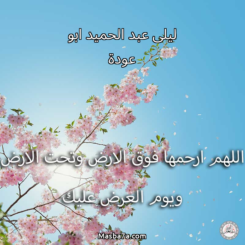اللهم ارحم ( ليلى عبد الحميد ابو عودة ) وانس وحشتها واجمعنا بها في جنتك ، اللهم ارحمها بقدر شوقنا لها اللهم ارحمها واغفر لها .