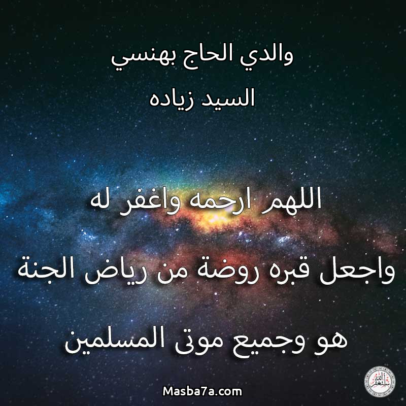 اللهم ارحم ( والدي الحاج بهنسي السيد زياده ) وانس وحشته واجمعنا به في جنتك ، اللهم ارحمه بقدر شوقنا له اللهم ارحمه واغفر له .