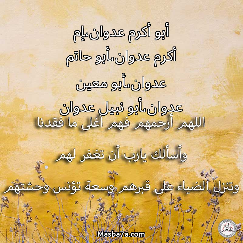 دعاء عن أرواح المرحومين أبو أكرم عدوان،إم أكرم عدوان،أبو حاتم عدوان،أبو معين عدوان،أبو نبيل عدوان