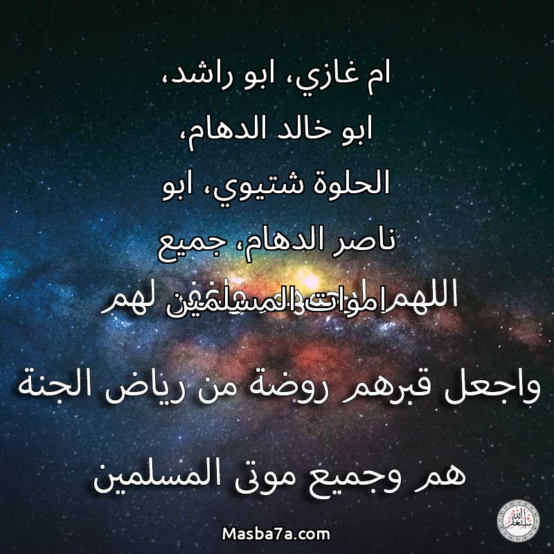 دعاء عن أرواح المرحومين ام غازي، ابو راشد، ابو خالد الدهام، الحلوة شتيوي، ابو ناصر الدهام، جميع اموات المسلمين
