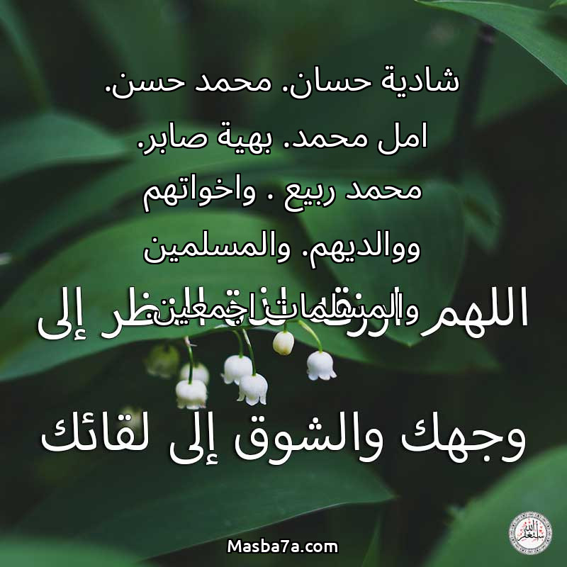 شادية حسان. محمد حسن. امل محمد. بهية صابر. محمد ربيع . واخواتهم ووالديهم. والمسلمين والمسلمات اجمعين.