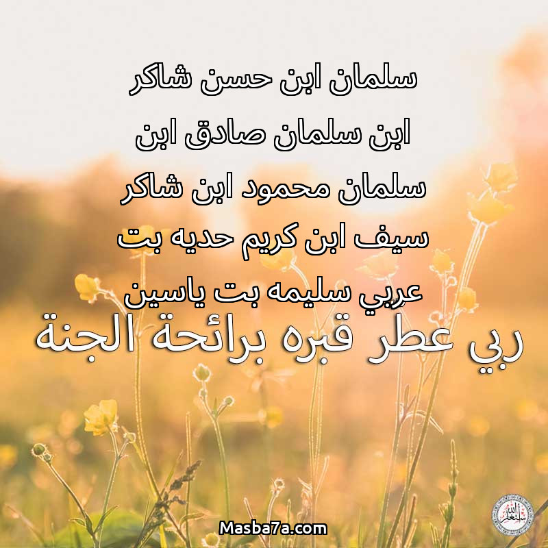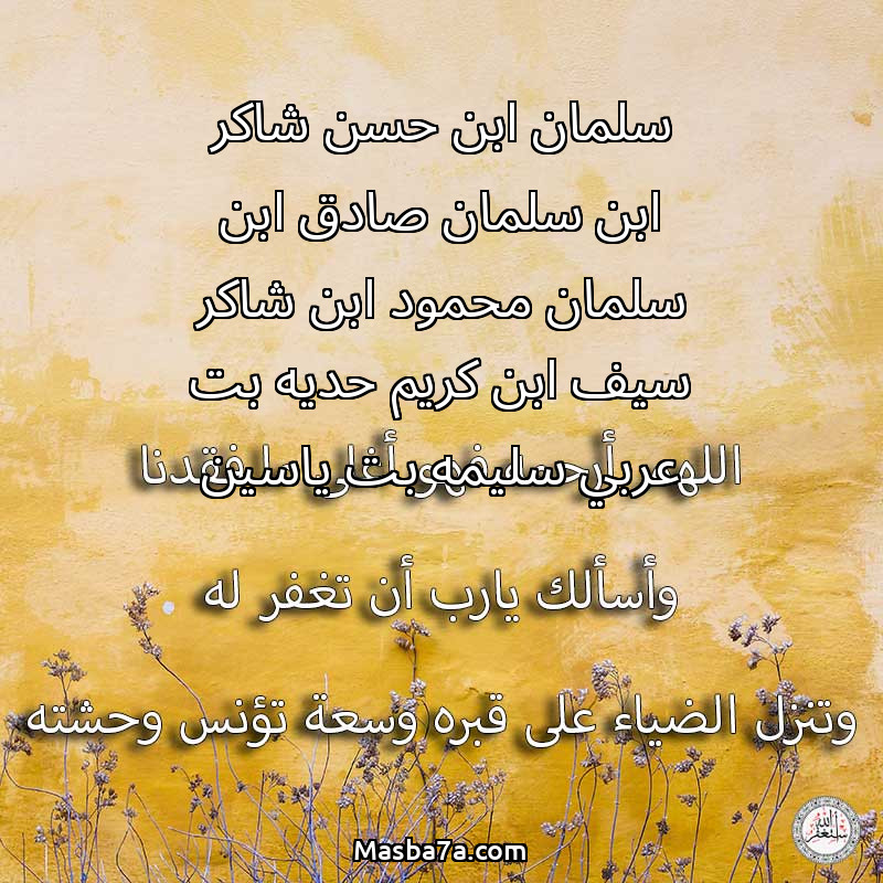 دعاء عن روح المرحوم سلمان ابن حسن شاكر ابن سلمان صادق ابن سلمان محمود ابن شاكر سيف ابن كريم حديه بت عربي سليمه بت ياسين