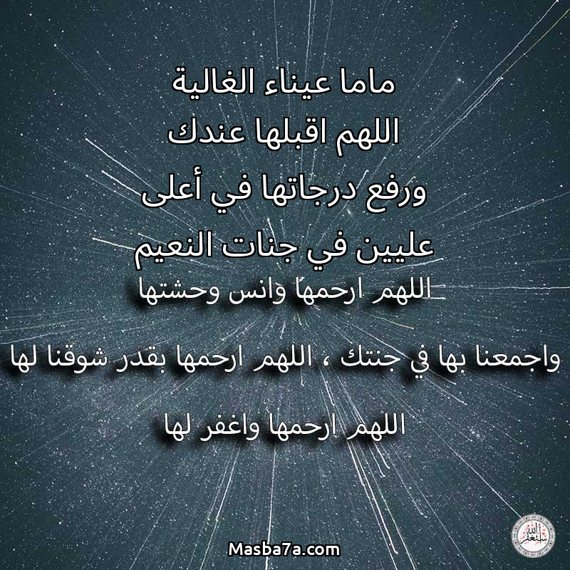 دعاء عن روح المرحومة ماما عيناء الغالية اللهم اقبلها عندك ورفع درجاتها في أعلى عليين في جنات النعيم