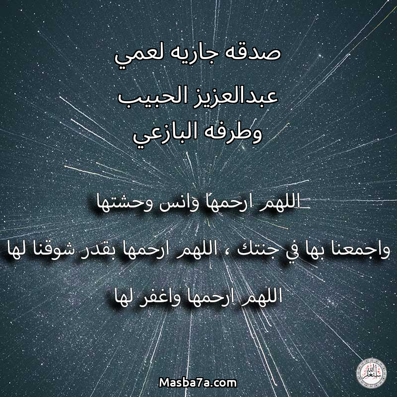 دعاء عن روح المرحومة صدقه جاريه لعمي عبدالعزيز الحبيب وطرفه البازعي