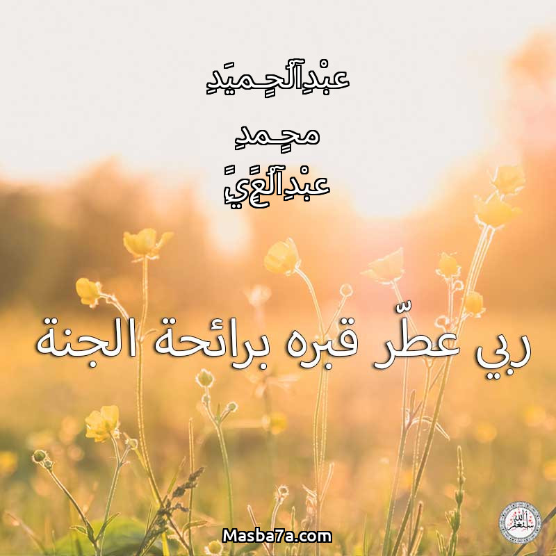 اللهم ارحم ( عبْدِآلُحٍـميَدِ محٍـمدِ عبْدِآلُعڒٍيَڒٍ ) وانس وحشته واجمعنا به في جنتك ، اللهم ارحمه بقدر شوقنا له اللهم ارحمه واغفر له .